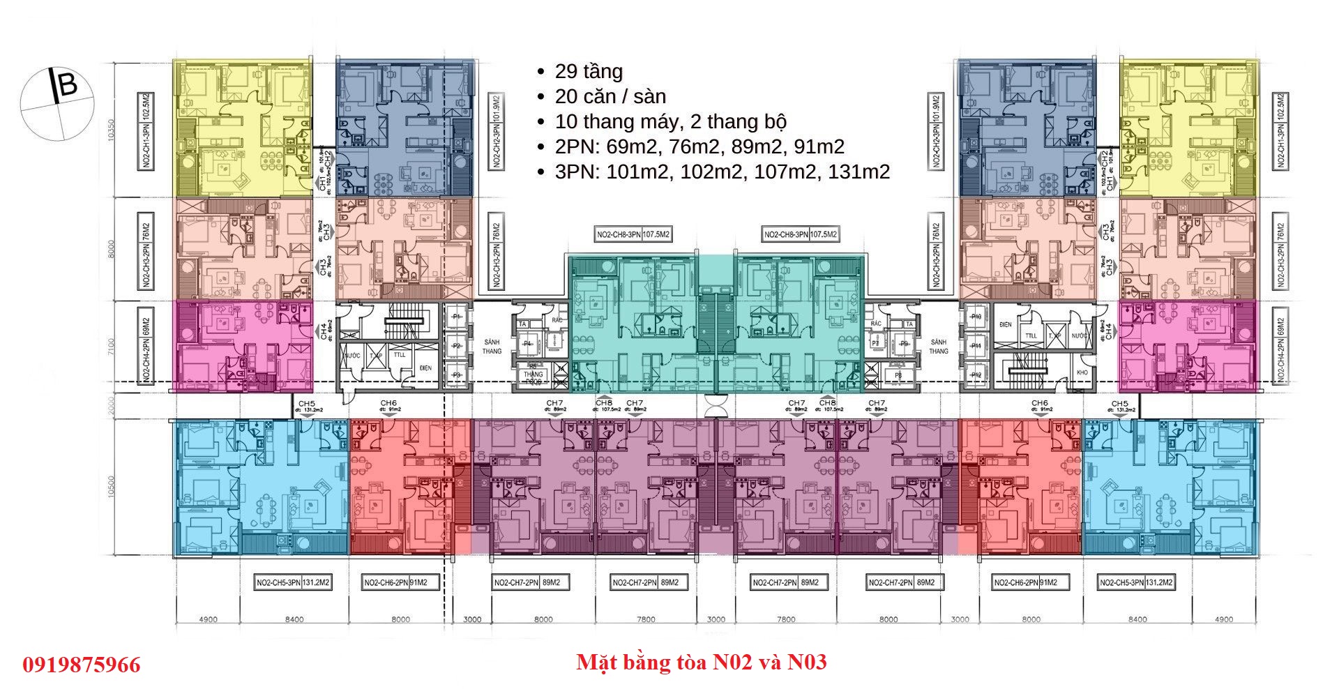 - Tầng 3 – 27: tầng căn hộ (N04)