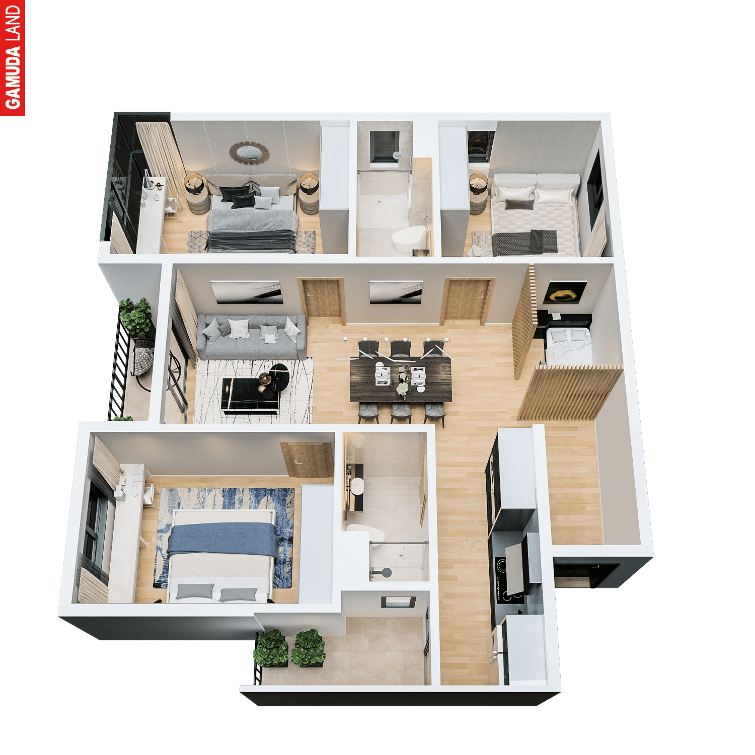 Căn hộ 98m3 căn 3PN Tòa The Zen Residence gamuda