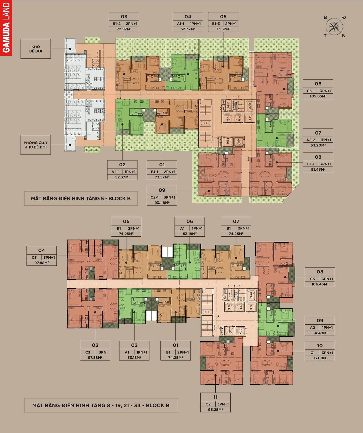• Diện tích căn hộ: 54m2 – 74m2 – 93m2 -95m2 – 98m2 – 106m2. Penthouse từ 154m2 – 175m2 – 221m2.