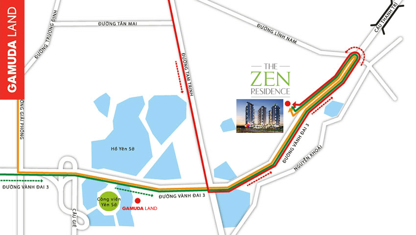 Là một trong 3 Khu căn hộ trong Khu đô thị Gamuda Gardens, chung cư The Zen Residence tận hưởng một vị trí đắc địa nhất dự án, tọa lạc tại cửa ngõ Phía Nam Hà Nội, chỉ cách Hồ Hoàn Kiếm chỉ 8km. Từ The Zen Residence có thể dễ dàng di chuyên đến phía Bắc và Đông Bắc qua cầu Thanh Trì, Phía Nam và Đông Nam qua cao tốc Pháp Vân – Cầu Giẽ, cao tốc Hải Phòng – Hà Nội, về phía Tây và Tây Băc qua đường Vành Đai 3 trên cao..